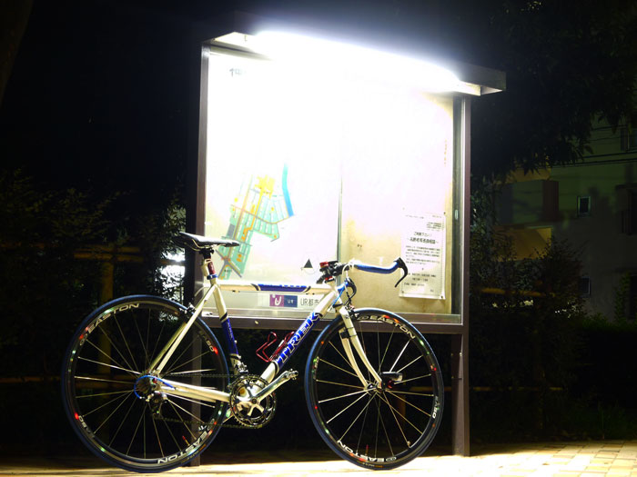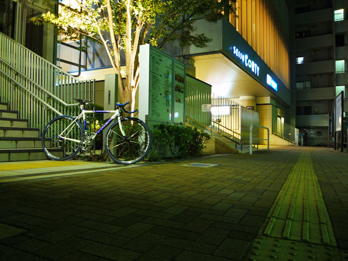 自転車で夜の街にくりだす。いや、正確にはコンビニに行っただけなんですがね。