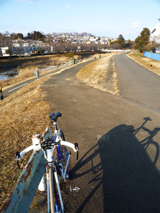 どうもみんな晴れの日を待っていたらしく、狭い河原の道は散歩&サイクリングの人がここぞとばかりに繰り出し中。結構混雑している。