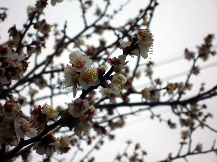 梅の木を発見。寒いのにもう咲いているのですなぁ。