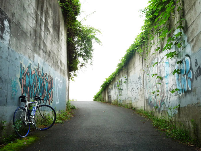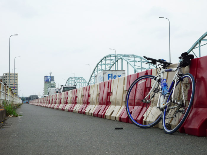 しばし神奈川側を走り、休憩。本日のルートで一番路面の良くない場所。