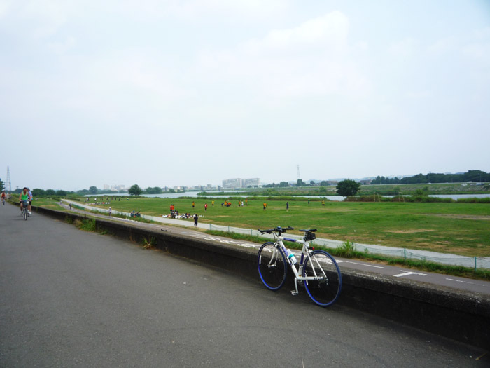 土手の上の道を走ったり河原のサイクリングロードを走ったり非常に急がしい。