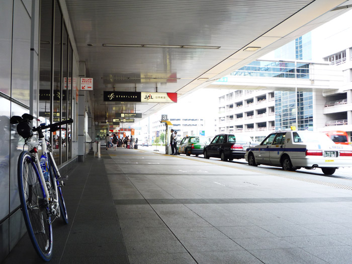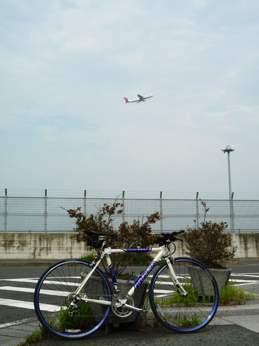 あまり自転車で空港に来る人はいないか。みんなスーツケース引っ張ってる中を、ひとりを自転車押して歩いていると、二度見される。いやはや。