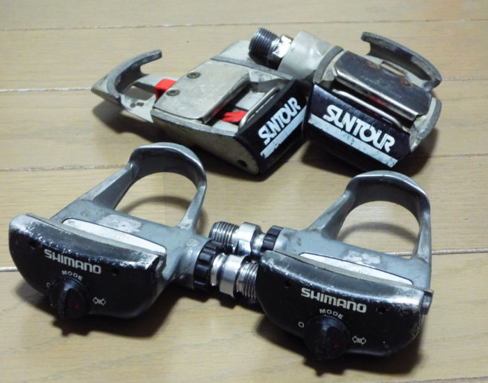 とりあえず、兄のシマノのペダルとちょっと借りてつけてみるか。