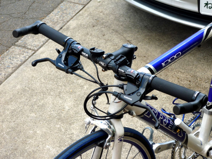 ポジション的にはだいぶ前傾になったけど、ドロップハンドルの下を持つのよりは起きる感じ。