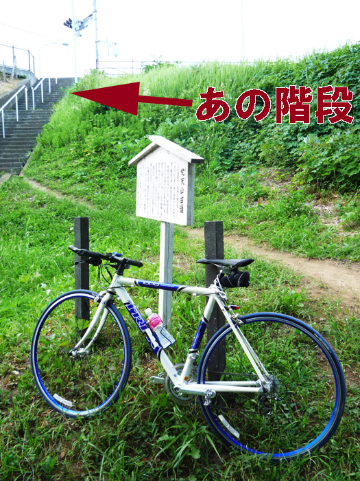 んで、結局捜し求めていた「楽そうな上り坂」はなく、「↓あの階段」を自転車を押しながら登る羽目に。